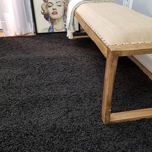 Amazon Com Shag Area Rug 5x7 Plain Solid Black Shag Rugs For