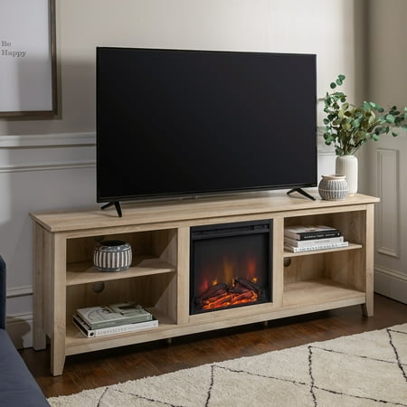 Walker Edison 70 Inch Tv Stand With Electric Fireplace White Oak