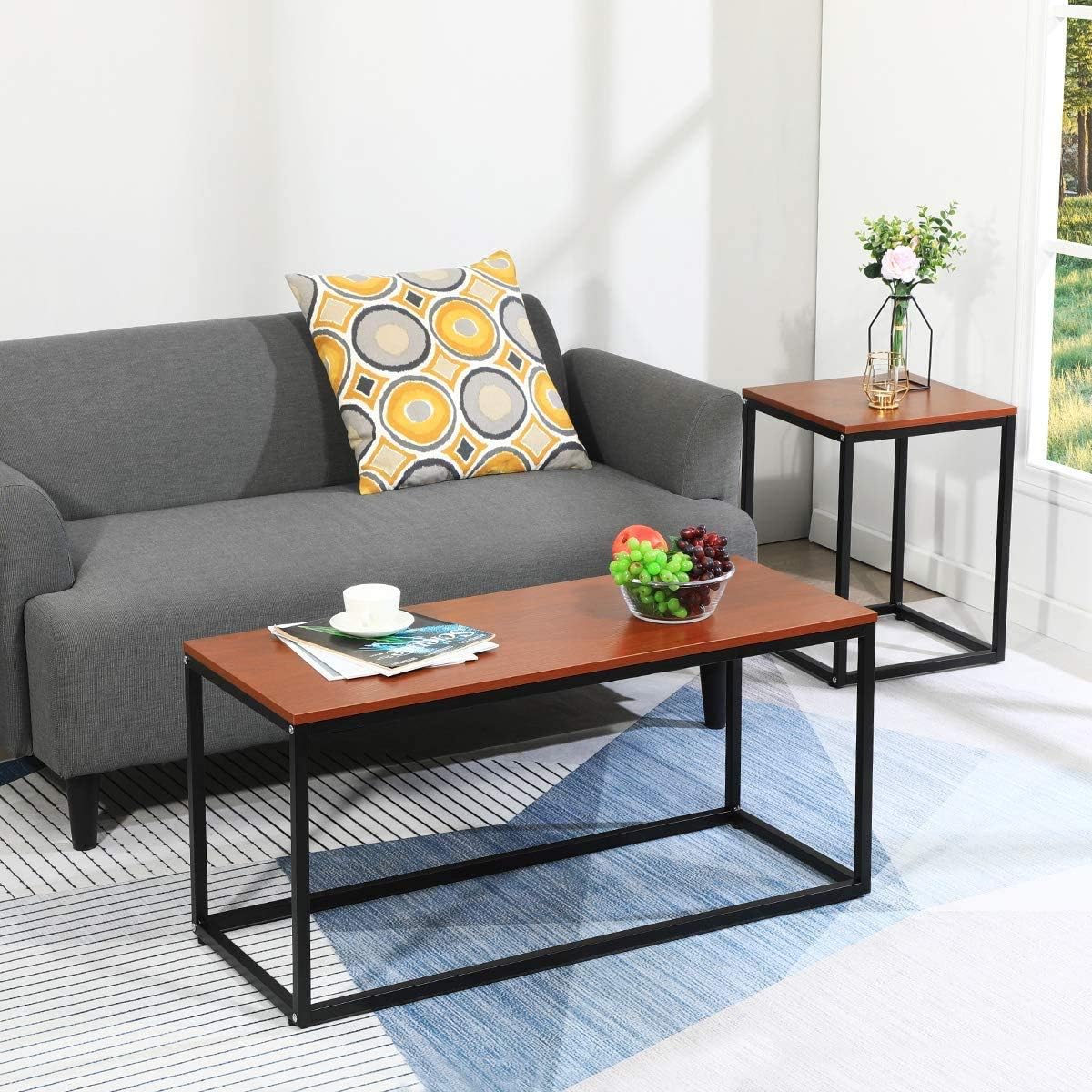 Amazon Com Greenforest Industrial Coffee Table And End Table For Living Room Accent Furniture Living Room Table Sets Easy Assembly Rustic Brown Kitchen Dining