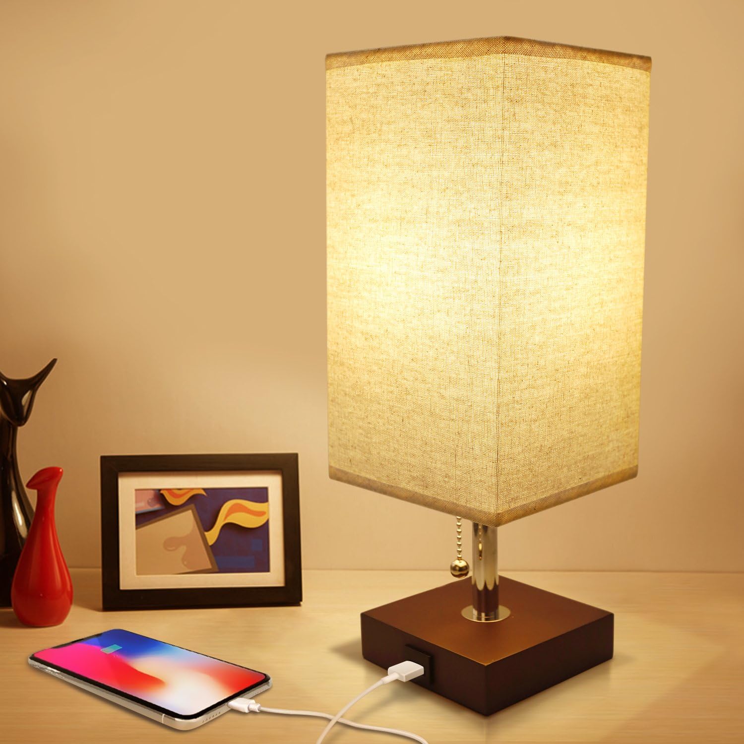 Usb Bedside Table Lamp Seealle Solid Wood Nightstand Lamp