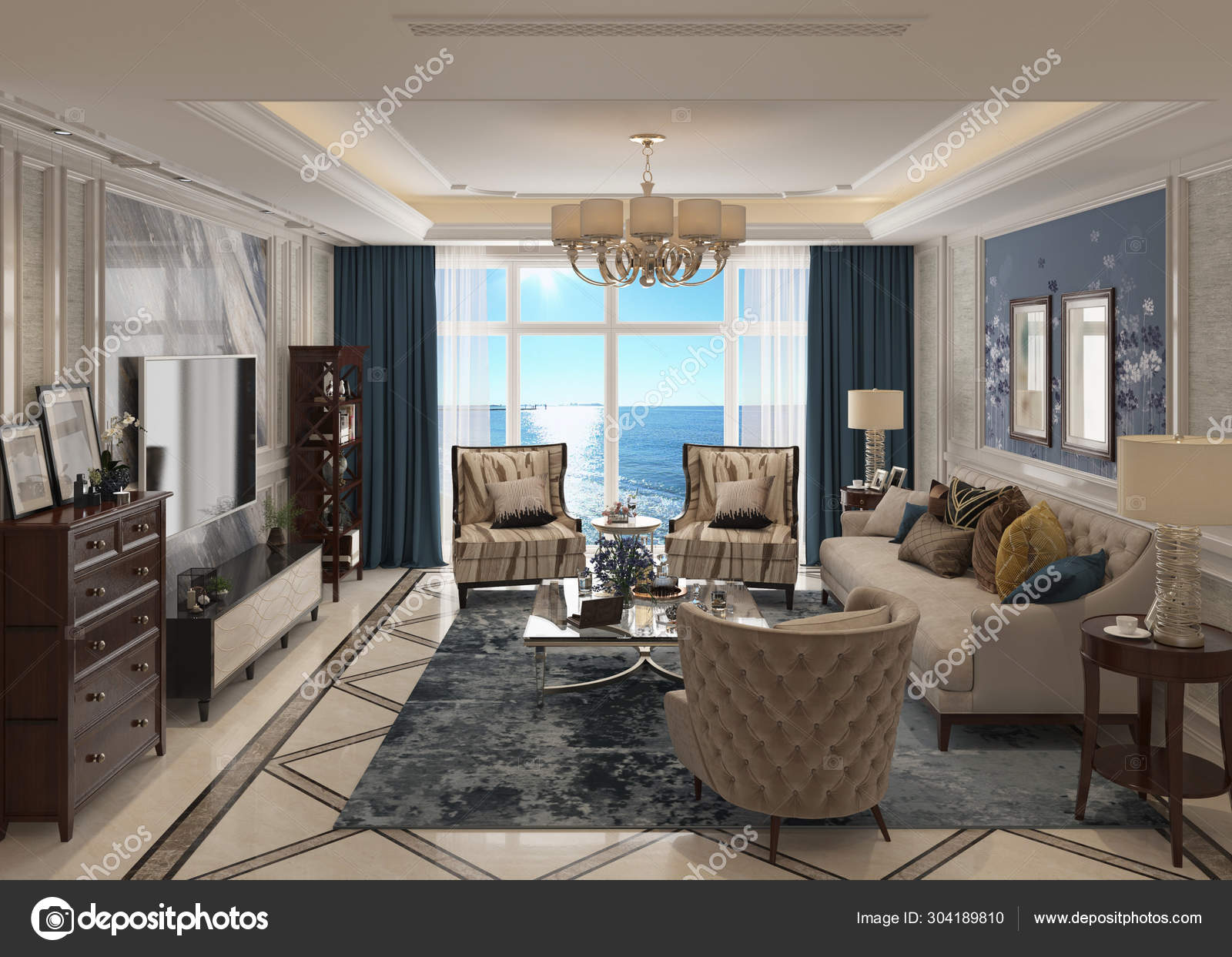 Living Room Interior In American Style 3d Illustration Stock