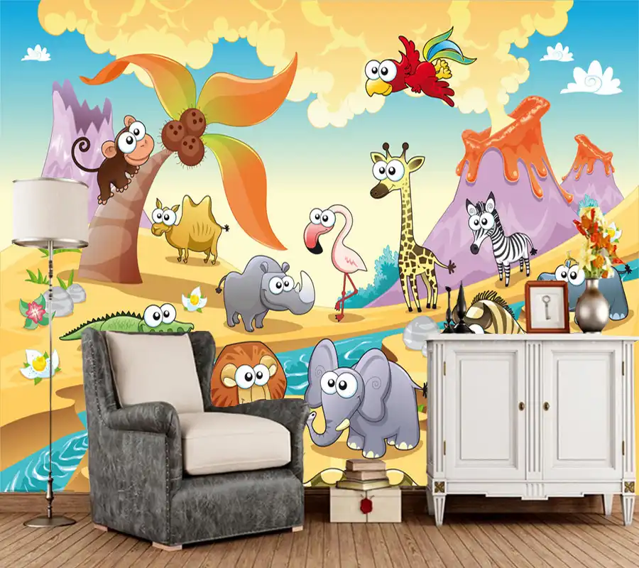Hyf Wallpaper Wallpaper Savannah Animal Cartoon Murals Home Decor Living Room Bedroom Background Murals 3d Wallpaper 200140cm Amazon Com