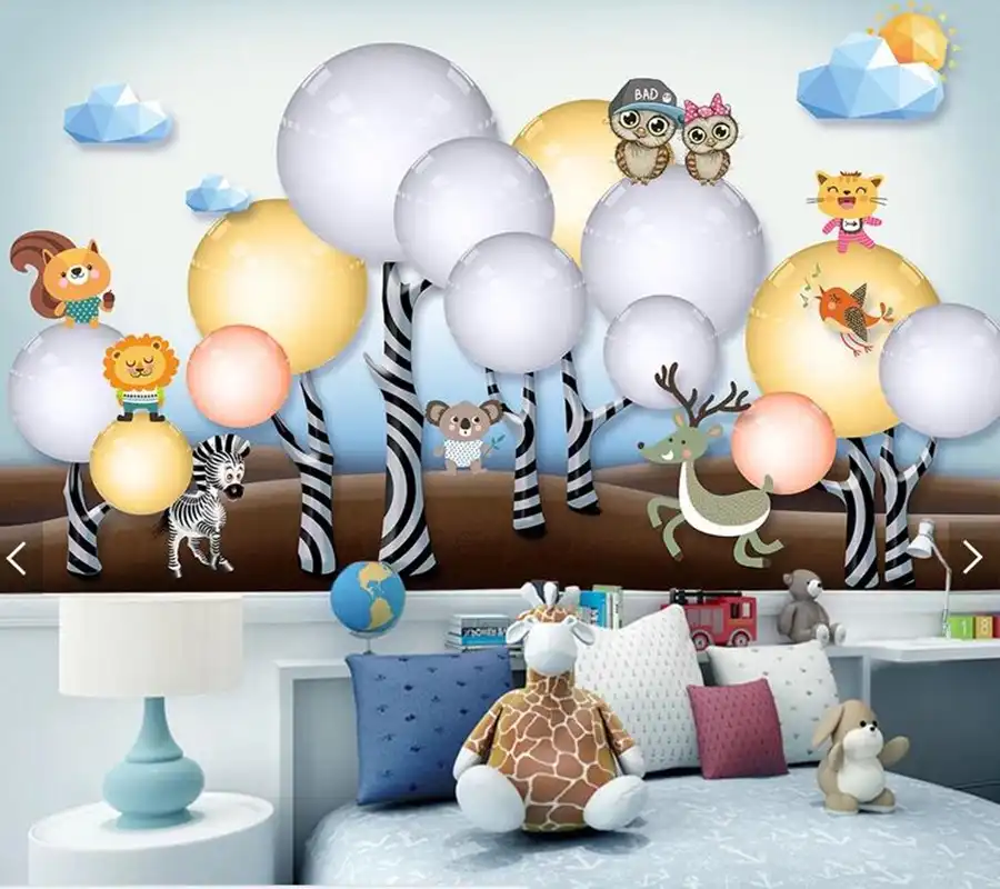 Custom Kids Papel De Parede Cartoon Animal Tree Fresco For Children Room Living Room Sofa Background Home Decor Wallpaper Aliexpress