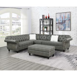 Esofastore 4pcs Sectional Sofa Luxury Laf And Raf Loveseats Wedge Armless Chair Slate Grey Leatherette Cushion Tufted Living Room Couch