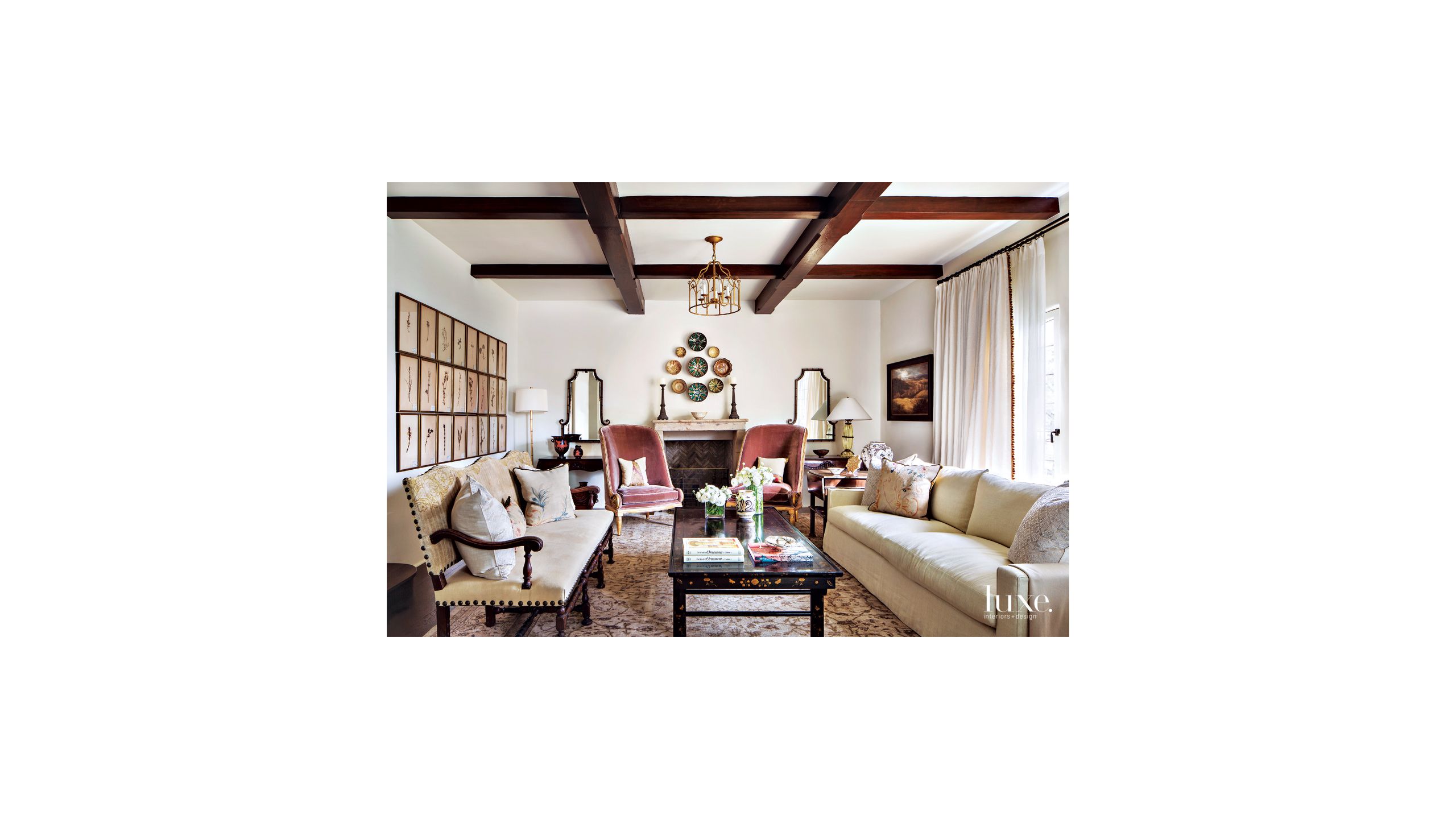 Traditional Cream Living Room With Asian Inspired Vintage Mirrors