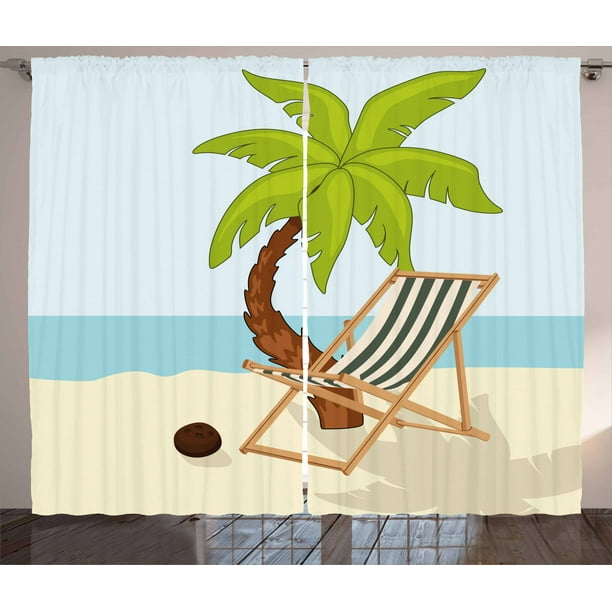 Beach Curtains 2 Panels Set Cartoon Style Drawing Palm Tree