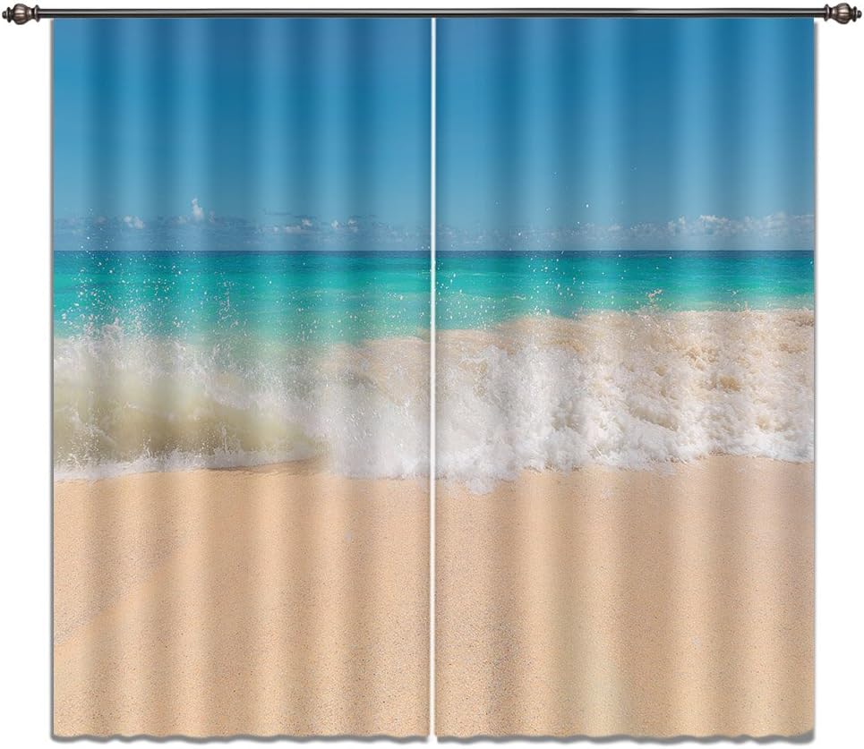 2020 Blue Beach Curtains Drapes Living Room Bedroom Decor 2