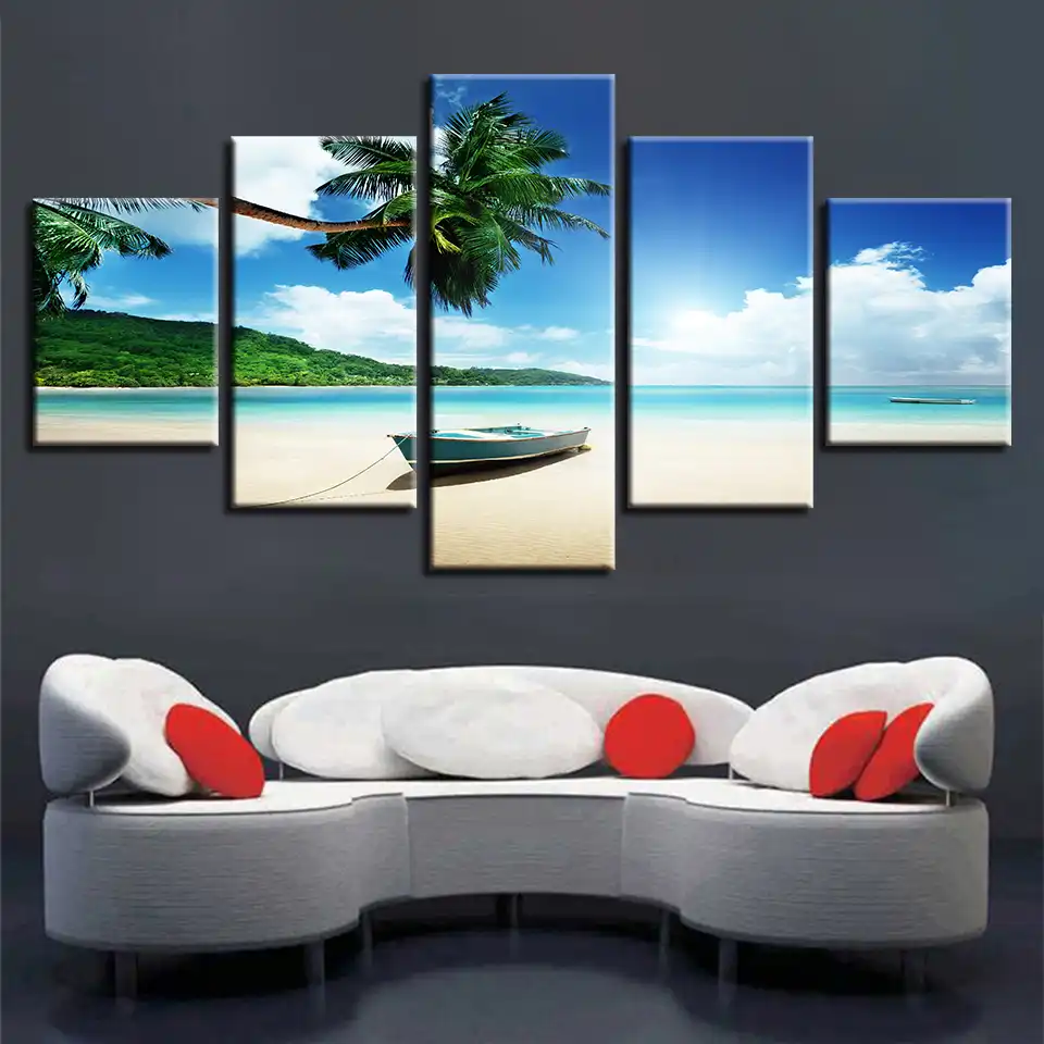 Landscape Sea Beach Ocean Sunrise Lighthouse Tropical 5 Piece Wall