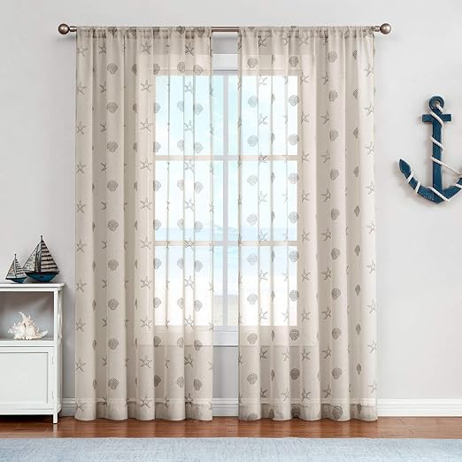 Amazon Com Jinchan Sea Shells Pattern Tan 95 Beige Sheer