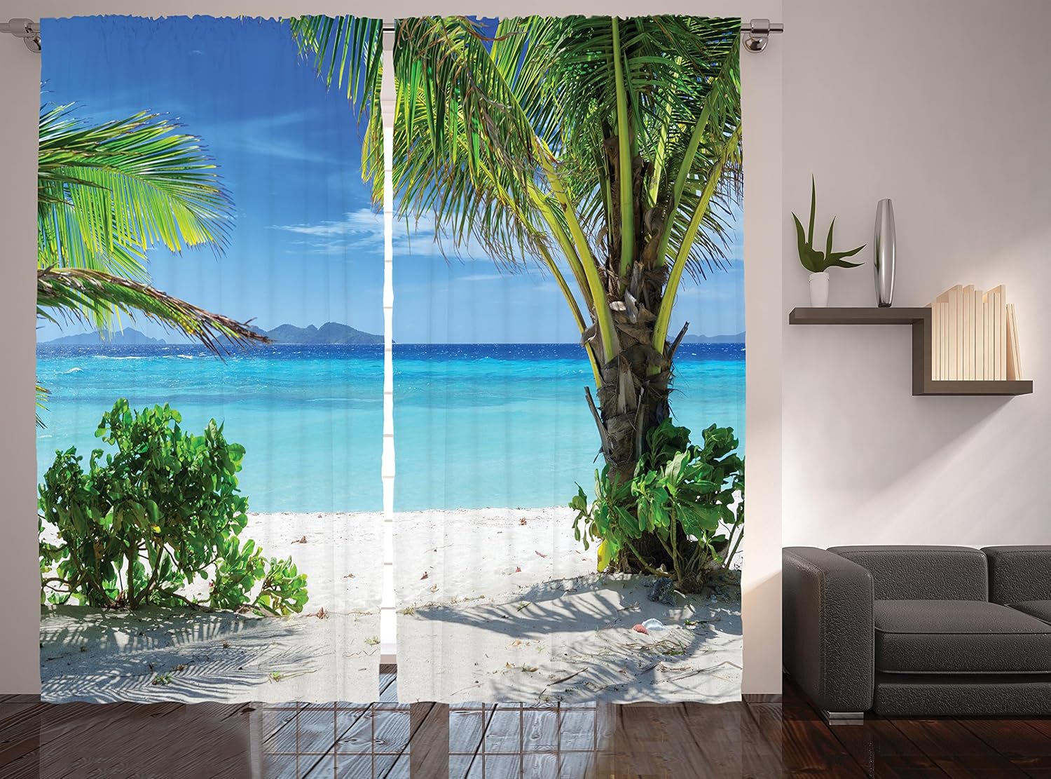 Amazon Com Ambesonne Tropical Curtains Idyllic Tranquil Ocean