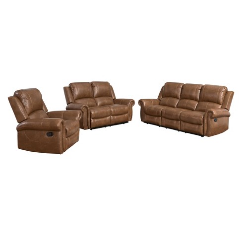 3pc Lorenzo Top Grain Leather Reclining Sofa Set Cognac Abbyson