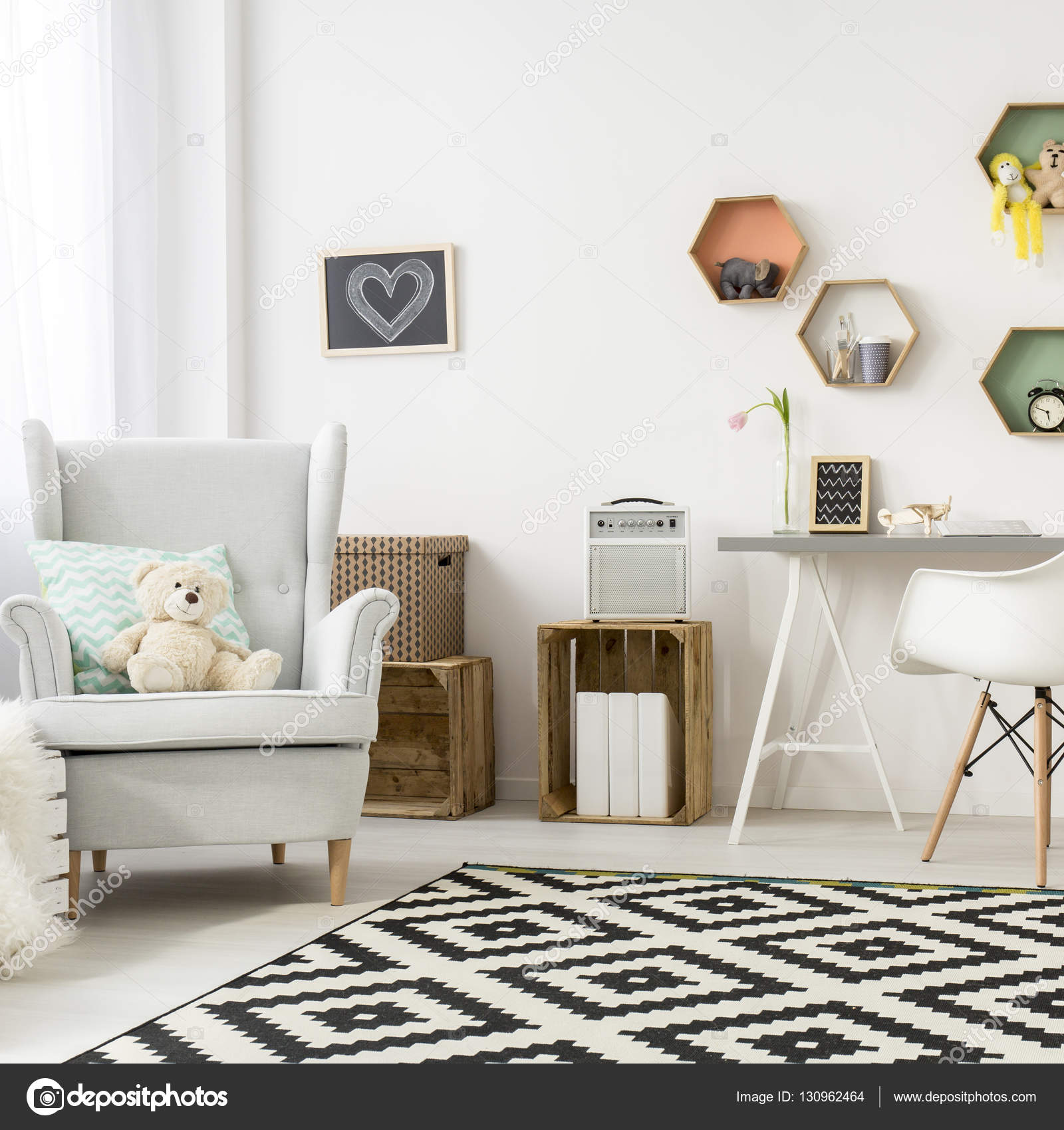 Room With Big Armchair And Desk With The Chair Stock Photo