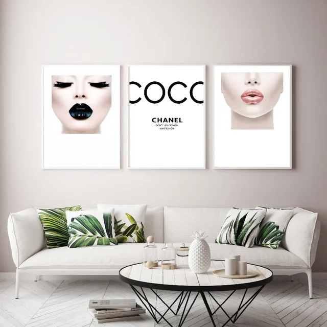 Modern Black Pink Lips Canvas Painting Coco Wall Art Posters Print