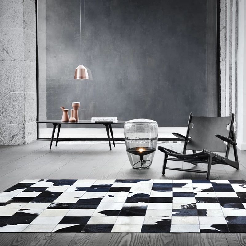 Luxury Cowhide Fur Patchwork Rug Real Cowskin Carpet Black And