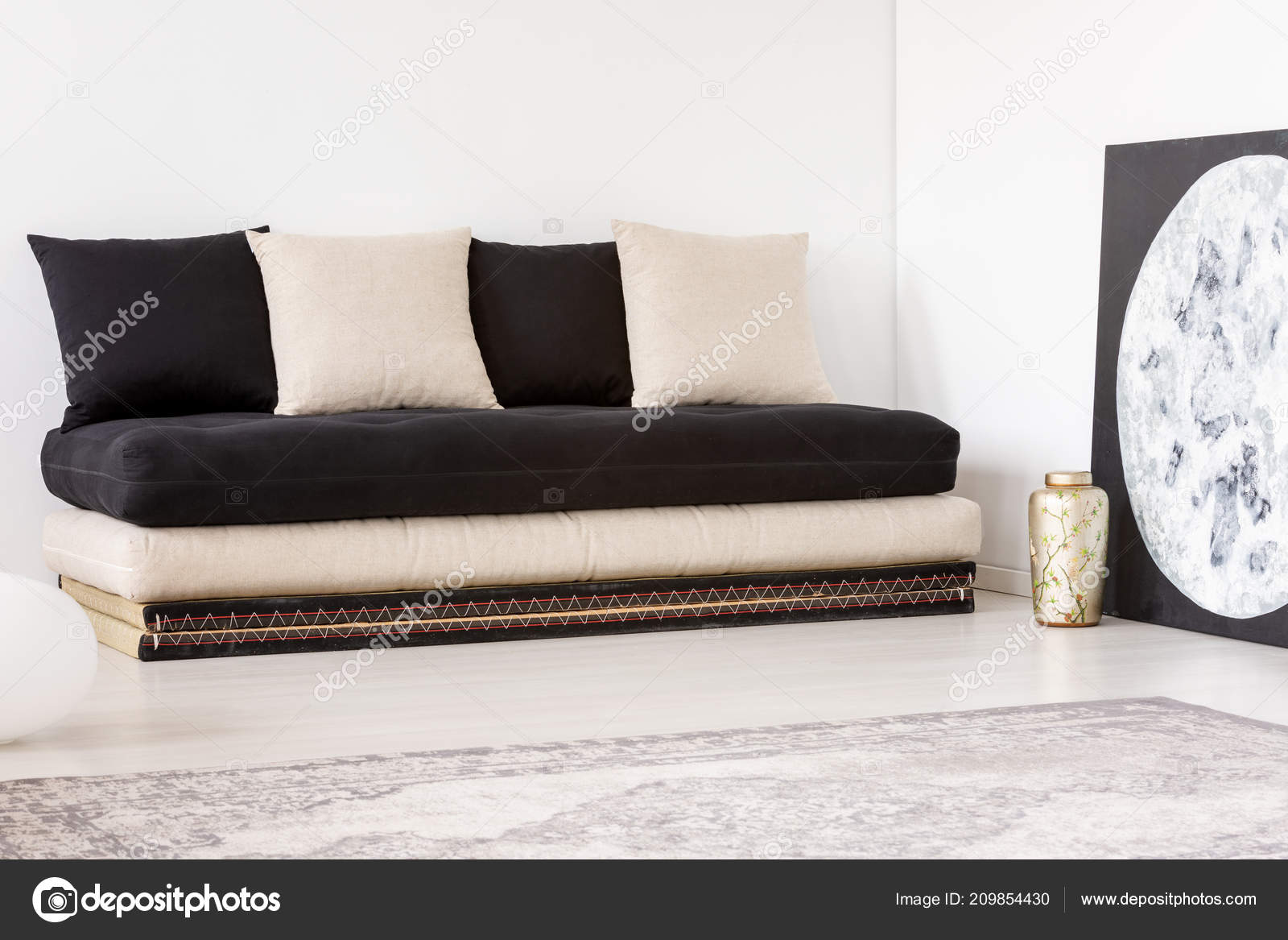 Cushions Black Sofa White Living Room Interior Moon Poster Carpet