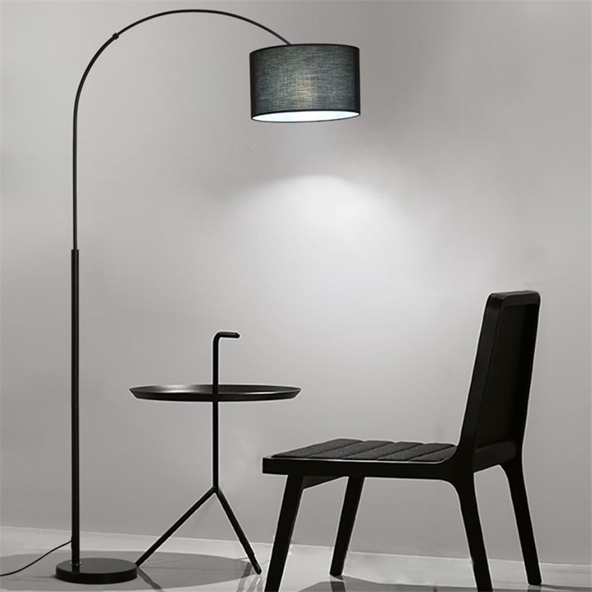 Nordic Loft Led Floor Lamp Black Cloth Lampshade Standing Lamp Living Room Floor Lamp Bedroom Decoration Stand Light
