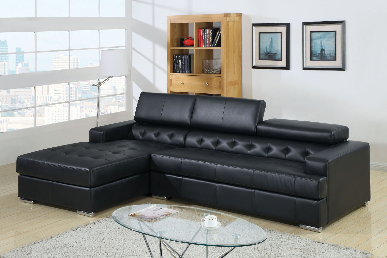 Dobson Contemporary Black Bonded Leather Upholstered Sectional Sofa Leather Sofa Living Room Living Room Leather Black Couch Living Room