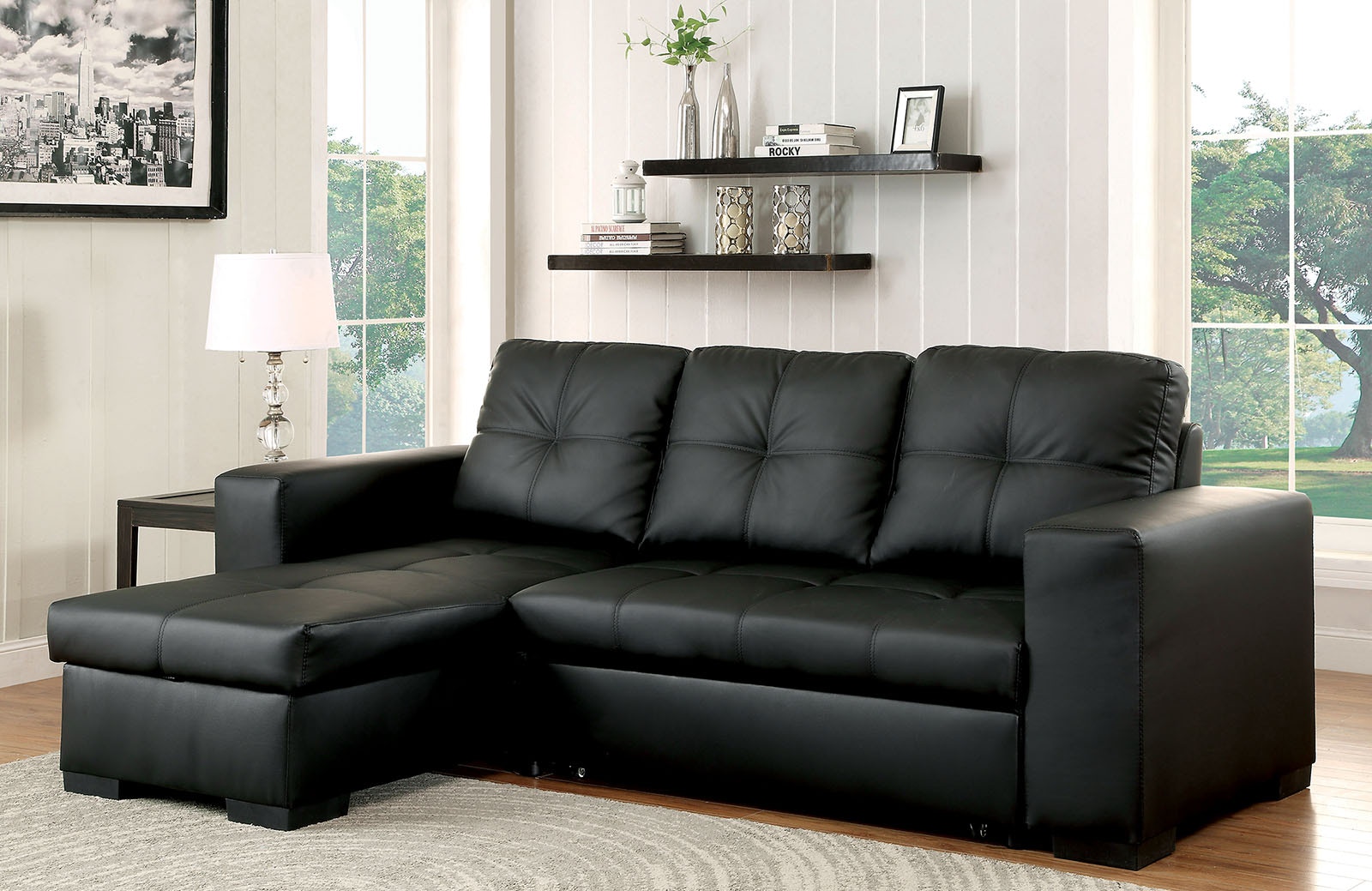 Contemporary Sectional Modern Sofa Bed Black With Functional Armrest Back L Walmart Com Walmart Com