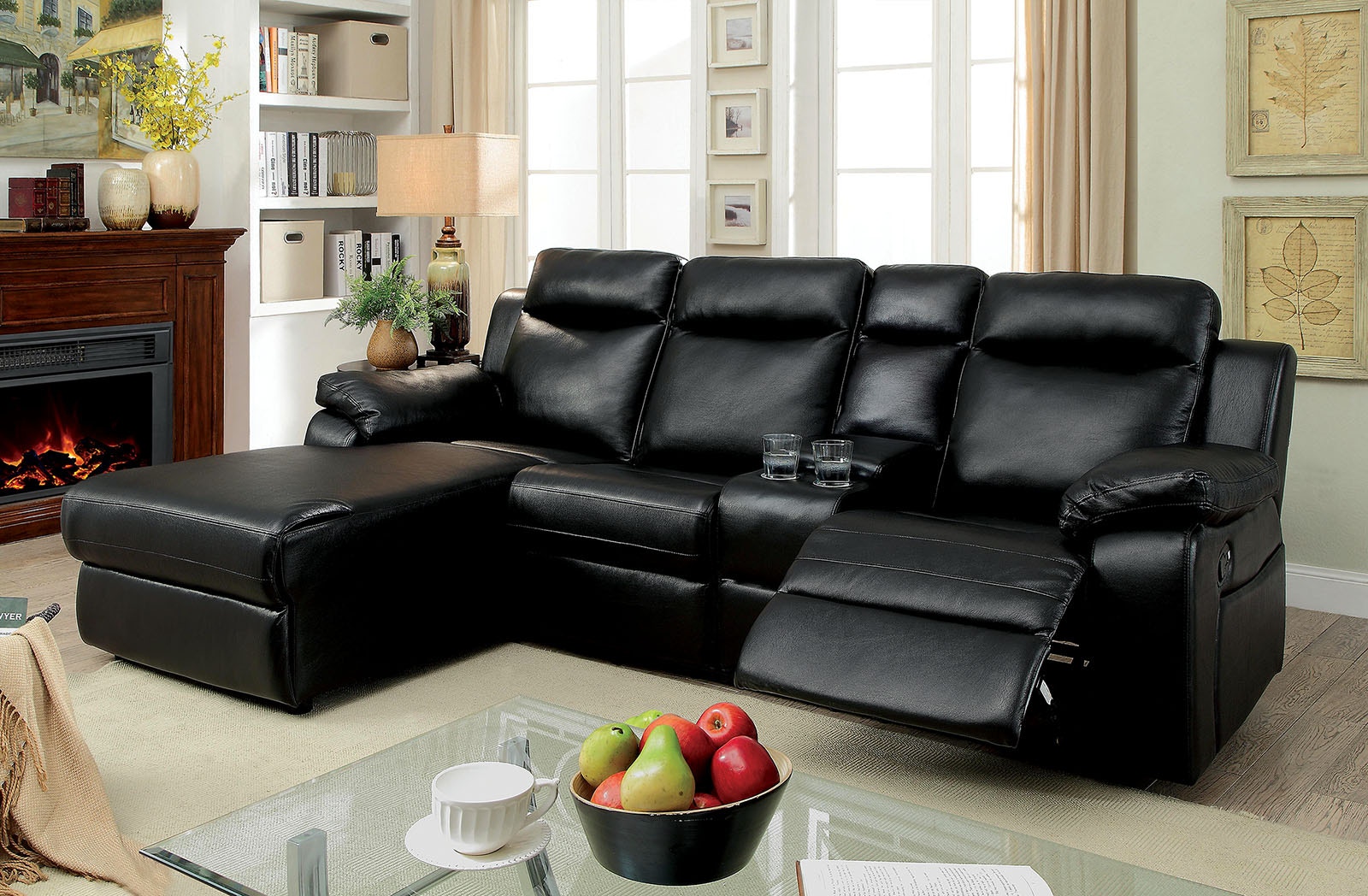 Sectional Bonded Leather Black Console Foa Hot Sectionals