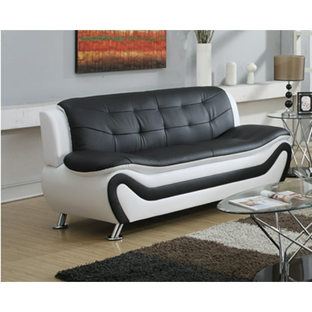 Frady Black And White Faux Leather Modern Living Room Sofa