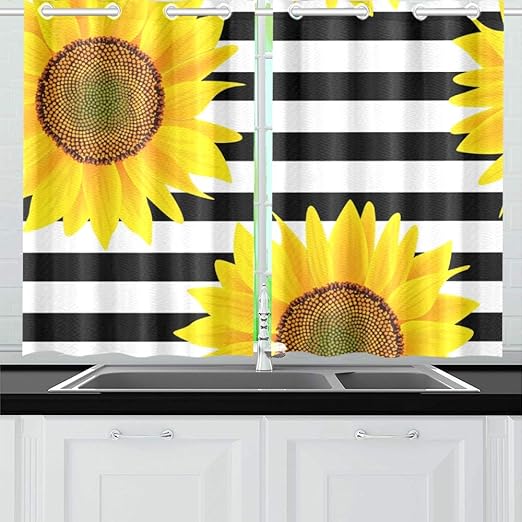 Amazon Com Yumoing Sunflowers On Striped Black White Kitchen