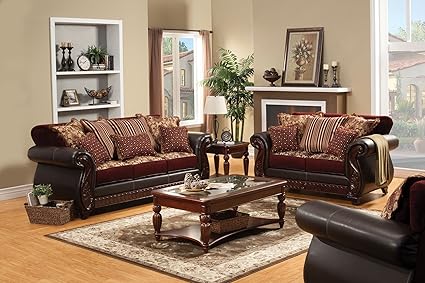 Ellis Brown And Burgundy Living Room Set Furniture Plus