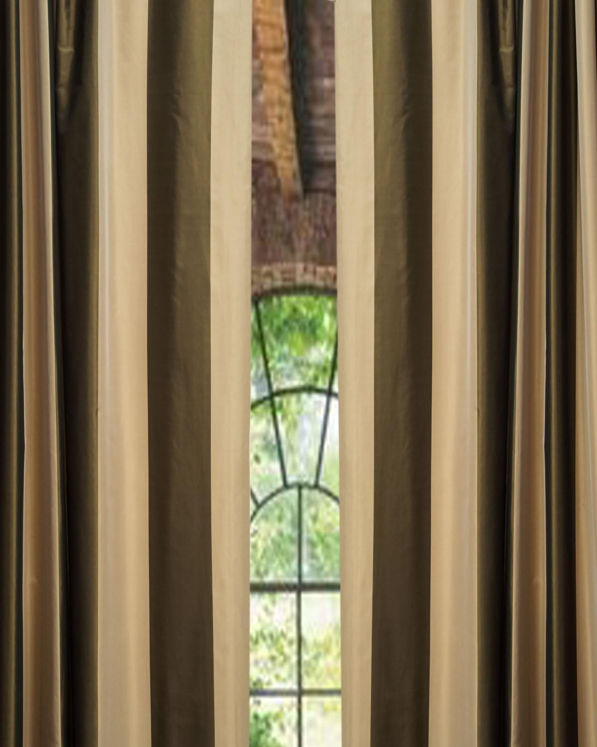 Amazon Com Ds Hampton Cream Dark Green Striped Faux Silk Living Room Window Lined Rod Pocket Curtain Panel Drape 52 Wide 52w X 84l Home Kitchen