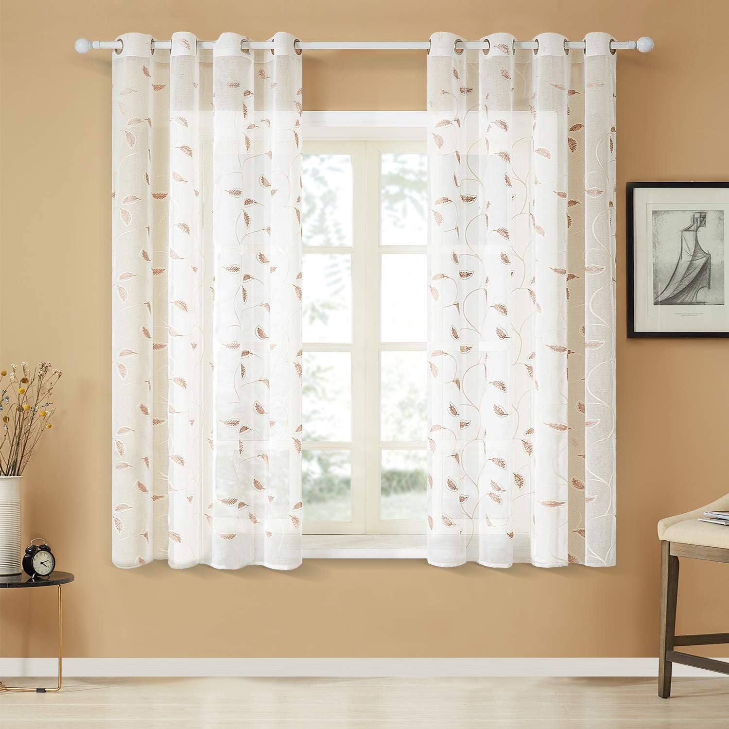 Amazon Com Top Finel White Sheer Curtains 63 Inch Length Brown