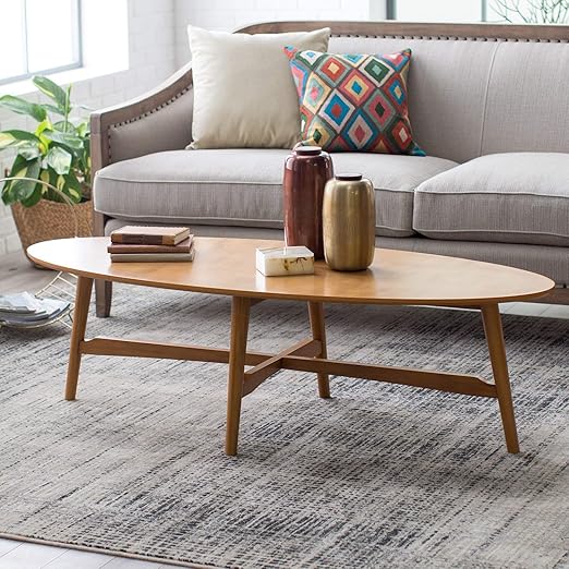Amazon Com Light Pecan Brown Finish Wood Mid Century Modern Oval