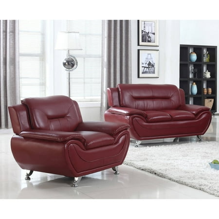 Ufe Norton Burgundy Faux Leather 2 Piece Modern Living Room Loveseat And Chair Set Walmart Com Walmart Com