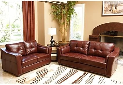 Amazon Com Abbyson Living Torrance 2 Piece Leather Sofa Set In Burgundy