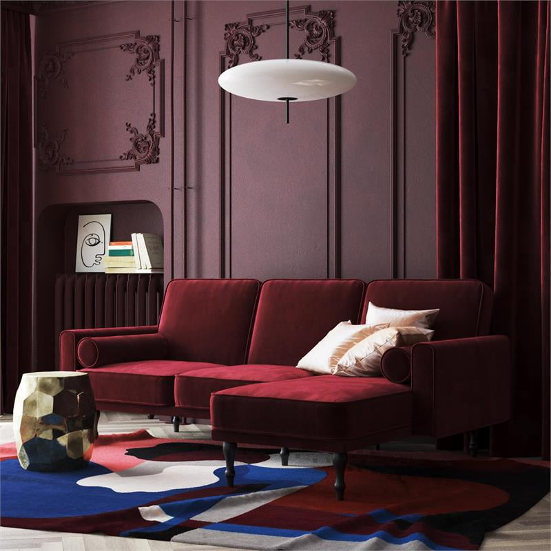 Dhp Elinda Small Space Sectional Futon In Burgundy Velvet