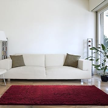 Amazon Com Lavish Home High Pile Shag Rug Carpet Burgundy 30x60 Kitchen Dining