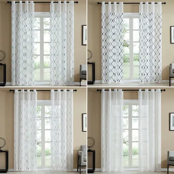 Geometric Design Sheer Curtains Tulle Window Curtains For Kitchen