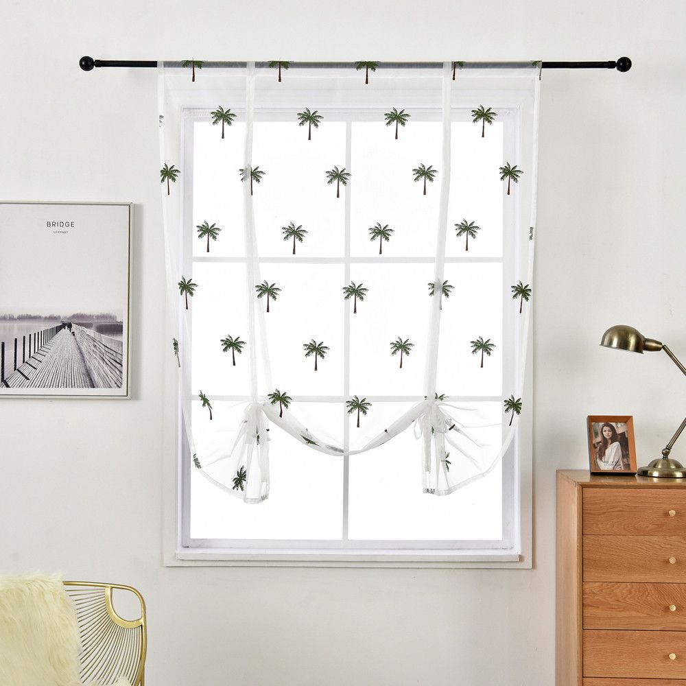 2020 Coconut Tree Embroidered Roman Curtains For Bedroom Window
