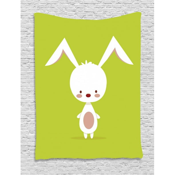 Bunny Tapestry Cartoon Character On A Green Background Clipart