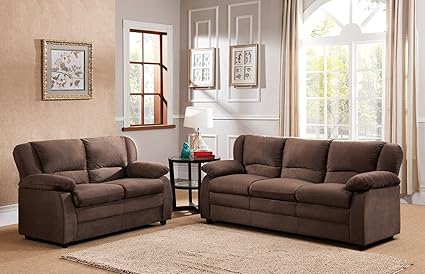 Luna Cafe Chocolate Sofa Loveseat Casual Microfiber Living Room