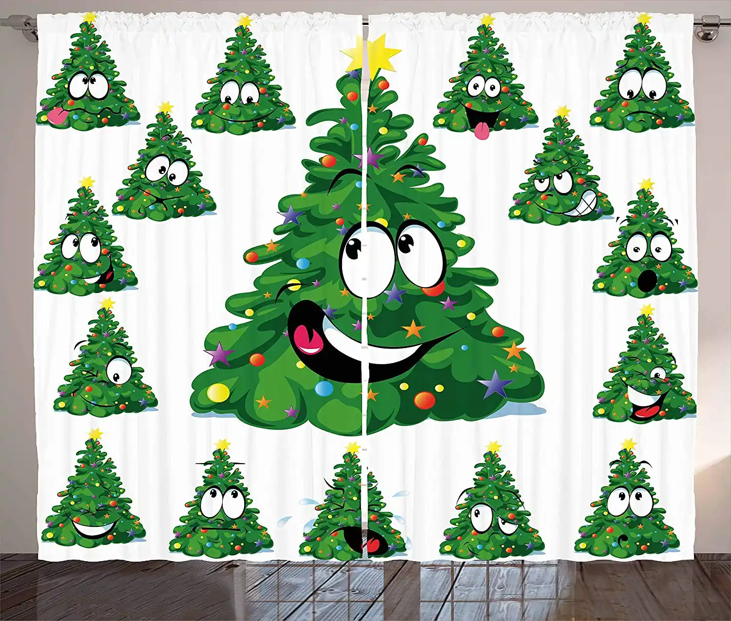 Christmas Curtains Christmas Tree Cartoon With Star And Different