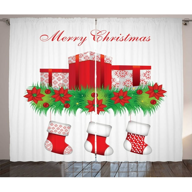 Christmas Curtains 2 Panels Set Stockings Hanging For Santa