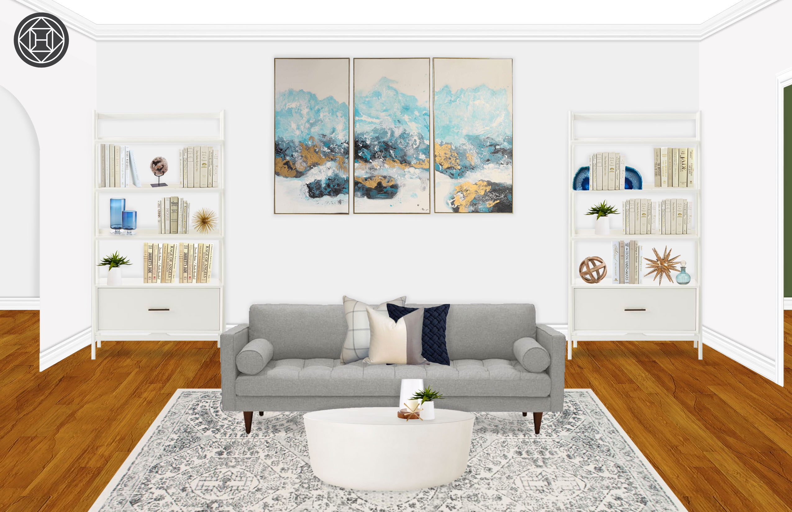 Get The Look Coastal Contemporary Living Room The Inspired Abode