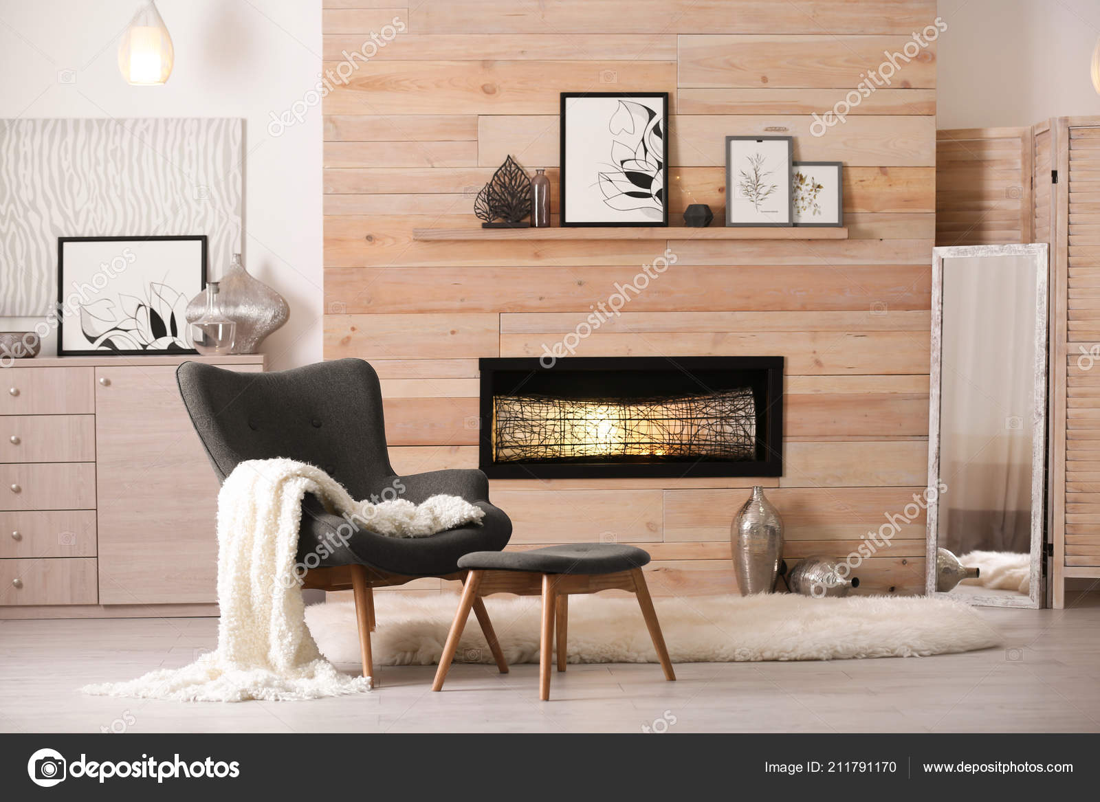 Cozy Living Room Interior Comfortable Furniture Decorative Fireplace Stock Photo C Liudmilachernetska Gmail Com 211791170