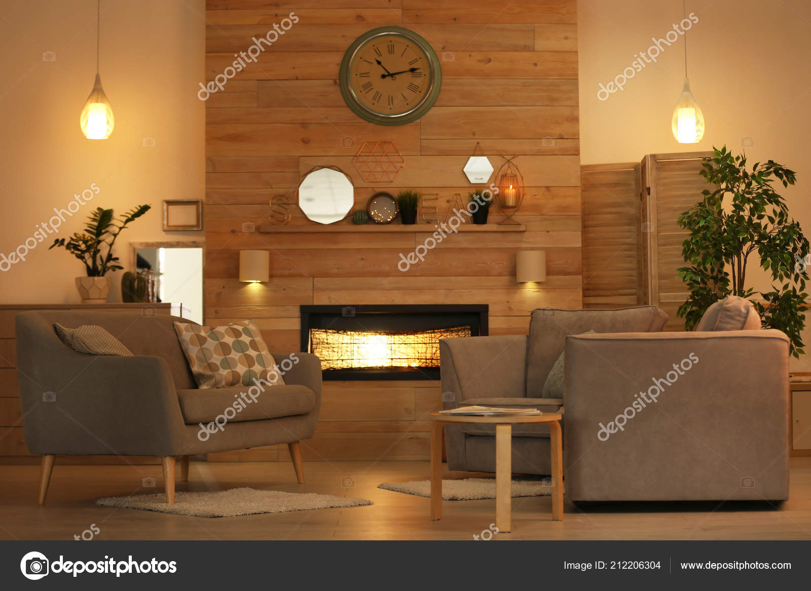 Cozy Living Room Interior Comfortable Furniture Decorative Fireplace Stock Photo C Liudmilachernetska Gmail Com 212206218