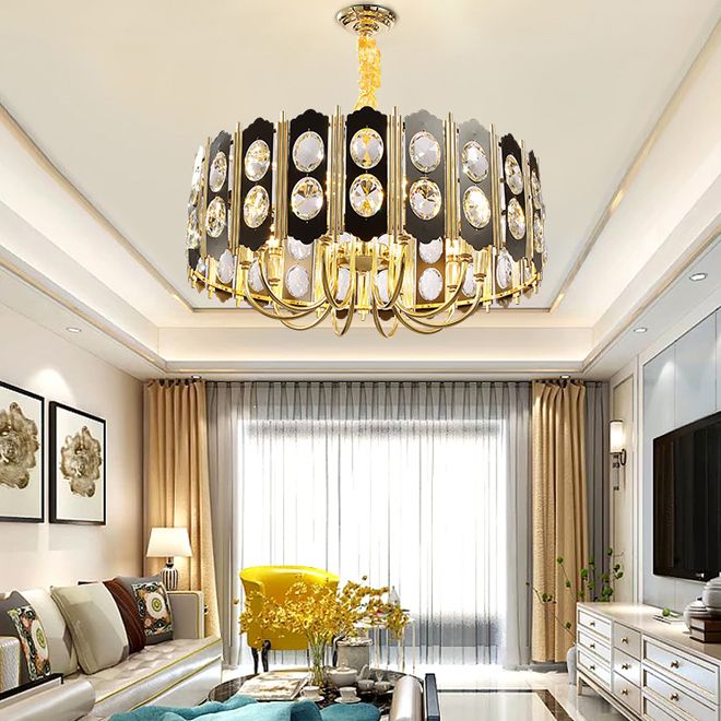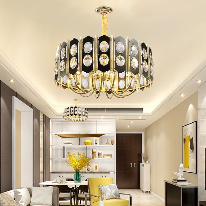 Black Modern Chandelier Lighting Living Room Round Crystal Lamps