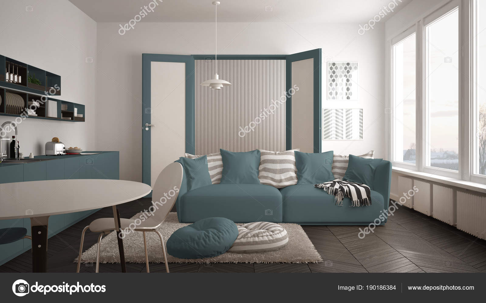Scandinavian Modern Living Room With Kitchen Dining Table Sofa