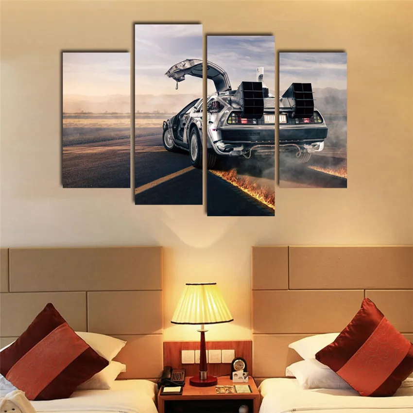 Sports Car Cuadros Decoracion Canvas Printings Wall Quadro For Living Room Morden Wall Art Canvas 4 Panel Paintings Cool Gift Picture Frame Car Car Transmission