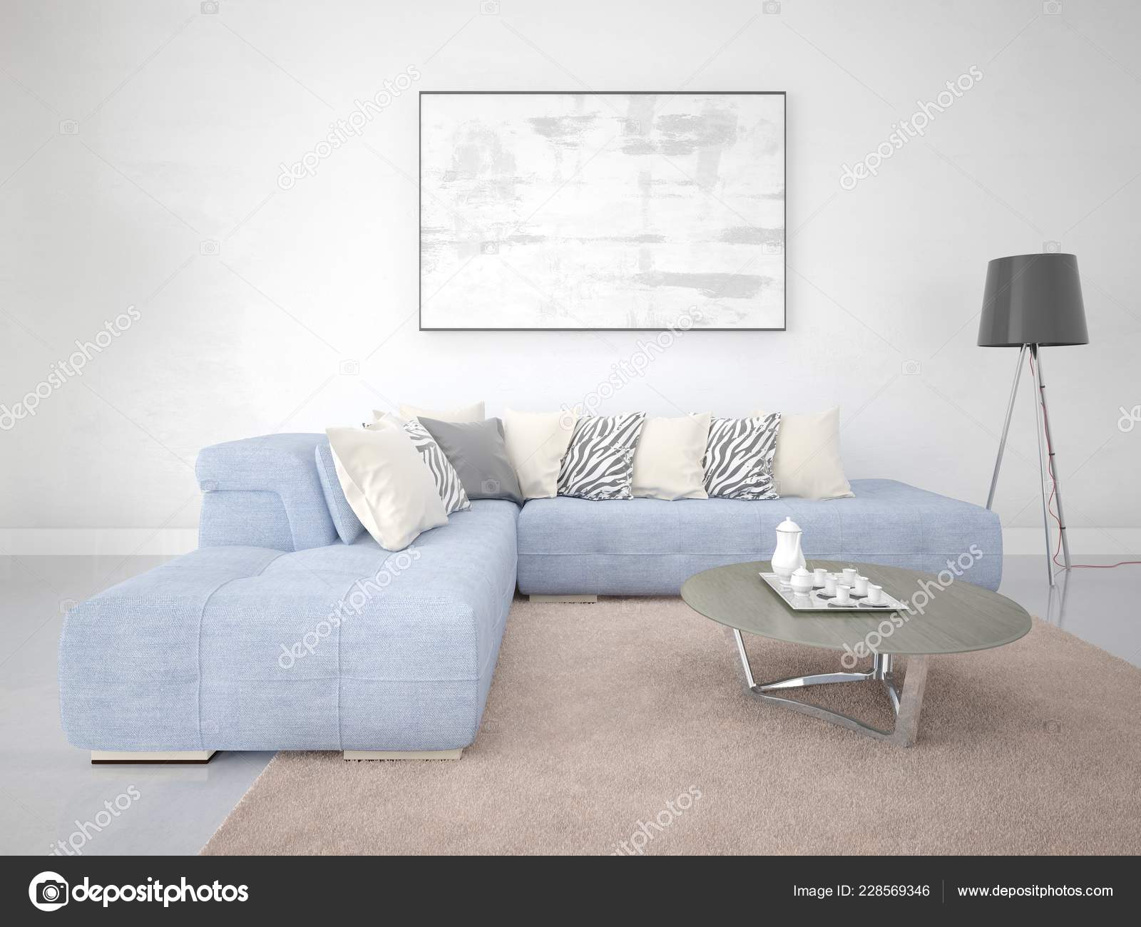 Mock Up Poster Spacious Living Room With Corner Light Sofa