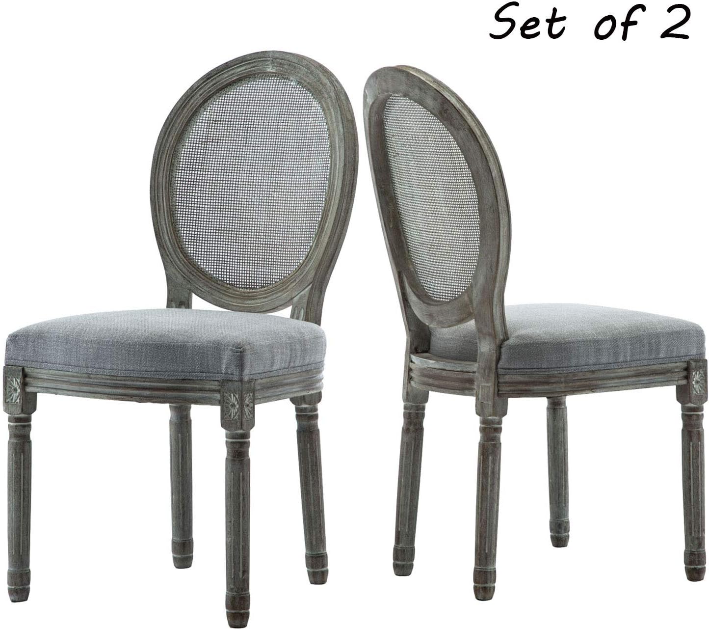 Amazon Com Zhenghao French Country Round Cane Back Dining Chairs Set Of 2 Farmhouse Retro Kitchen Chairs