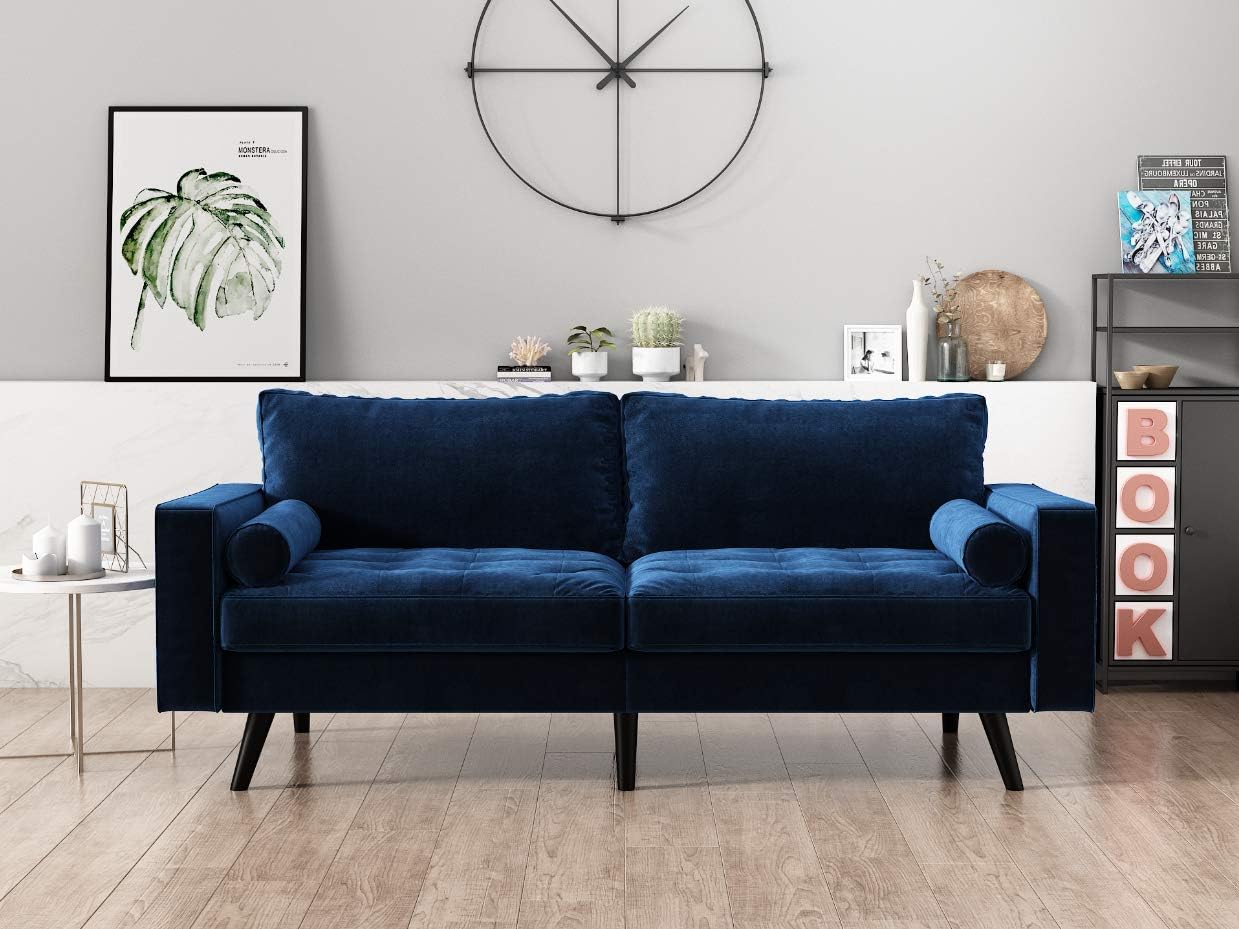 Amazon Com Wonline Mid Century Sofa Modern Velvet Blue Couch With