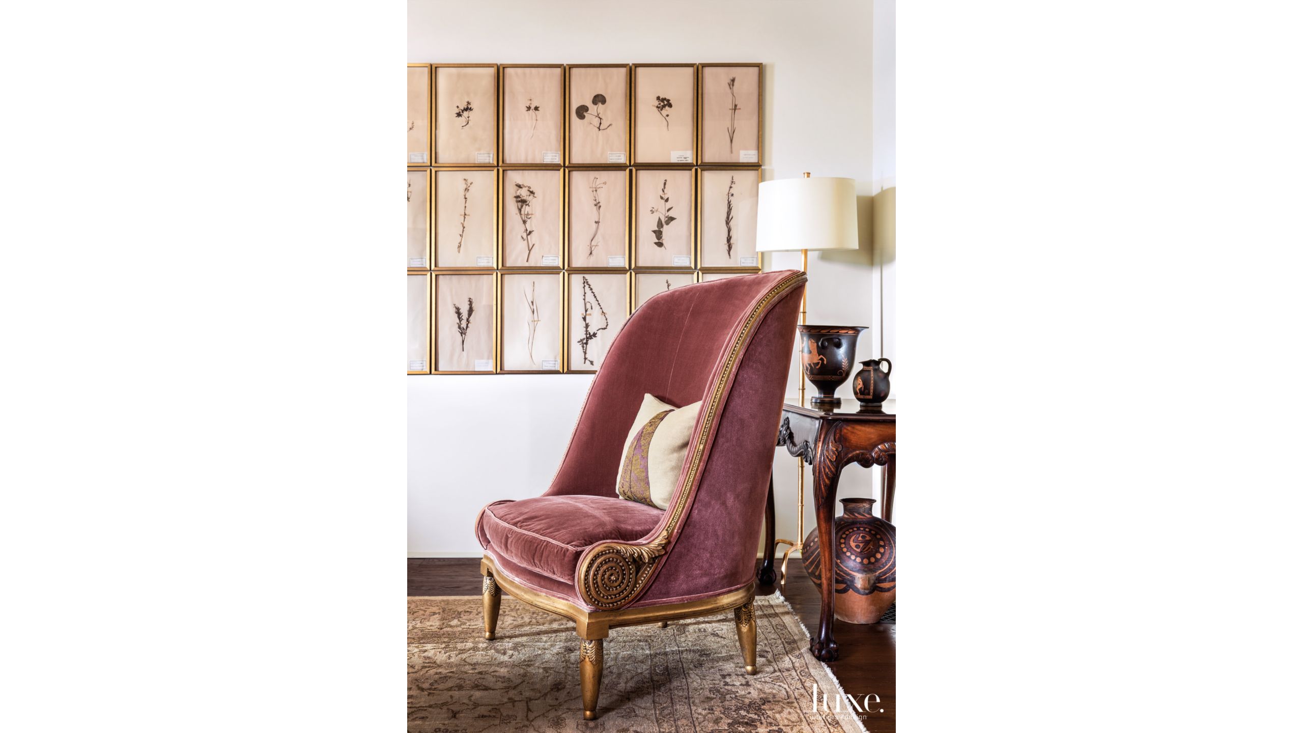 Traditional Cream Living Room Vignette With Gilt Chair Luxe