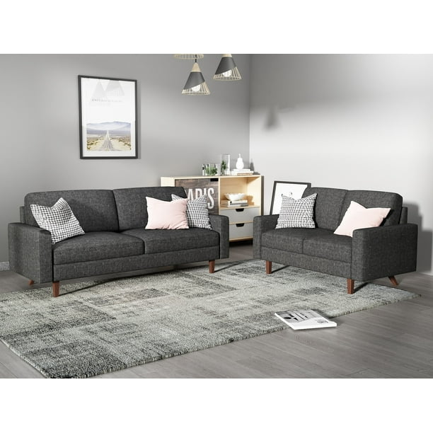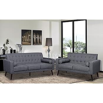 Dark Gray Linen Retro Style Tufted Sofa Loveseat Set With Thin